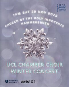 UCL Chamber Choir is excited to present its first concert of the year! Featuring Britten’s Five Flower Songs and Tippet’s five Spirituals, come along for an evening of beautiful music.